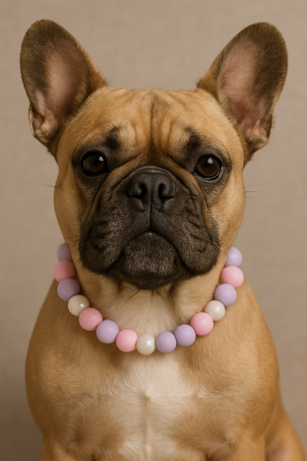 Met een combinatie van matte, glans-, glitter- en speciale kralen maken wij een unieke ketting die past bij de uitstraling en persoonlijkheid van jouw hond.