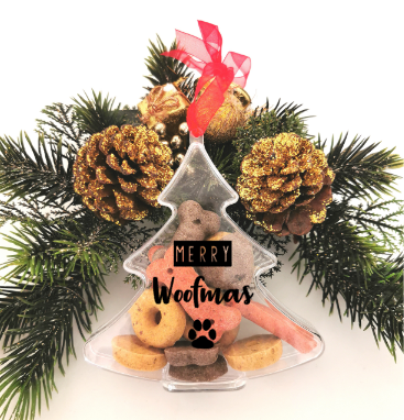 Kerstboom hanger Merry Woofmas met snacks