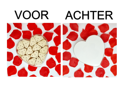 Onze snack harten kunnen verzonden worden in een prachtige cadeau doosje in Valentijn thema om jouw cadeau nog feestelijker te maken als optie. Deze zijn los bij te bestellen.