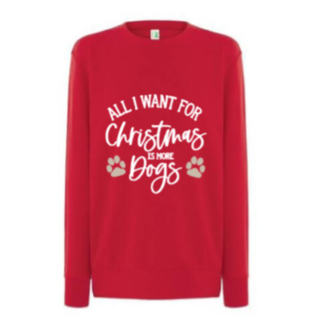 Kerst sweater '' ALL I WANT FOR CHRISTMAS IS MORE DOGS '' voor de hipste dames/mama's !